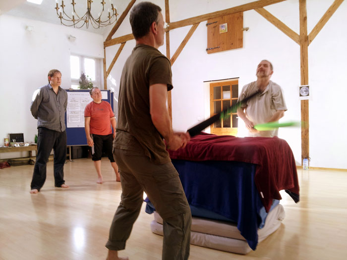 „Es war schön zu sehen, wie Ihr ein Gefäß geschaffen habt, welches Wachtum ermöglicht hat und nahezu über das gesamte Wochenende dicht und stabil war. Ich denke, so eine Fähigkeit entsteht durch viel Arbeit an den eigenen Schatten der Seminarleitung und reicht über Jahre. Ich danke Euch für die Arbeit an Euch selbst, die eine Tragfähigkeit ermöglicht hat, mich zu halten und mir das Gefühl gegeben hat, nicht abstürzen zu können.“